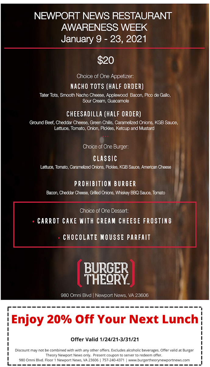 Welcome to Burger Theory, a culinary haven located at 980 Omni Blvd in Newport News, VA. This vibrant eatery specializes in crafting mouthwatering burgers that elevate the classic American dining experience. From the iconic CLASSIC burger, featuring American cheese, grilled onions, and the signature KGB sauce, to the indulgent FARM FRESH burger, layered with roasted red peppers and Boursin cheese, every bite promises a unique burst of flavors.